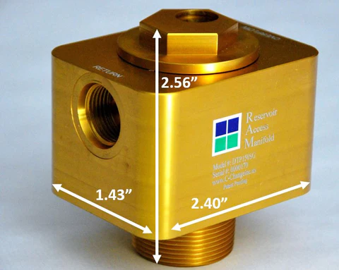 The overflow port allows access to the reservoir air space. In an overflow situation the air space is filled with fluid and can over pressurize the reservoir. When the overflow port is connected to another tote, drum or reservoir the fluid has an escape route preventing over pressurization. The overflow